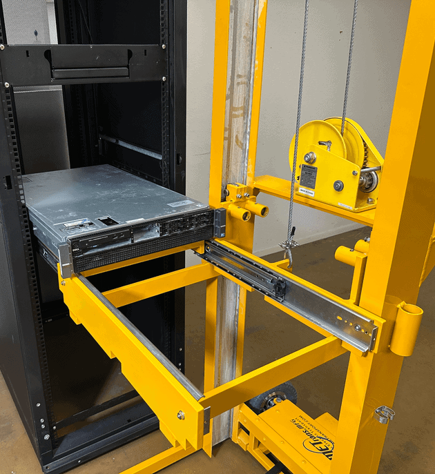 Our new server rack lifter has allowed our techs to quickly and safely install infrastructure of all sizes in our server racks
